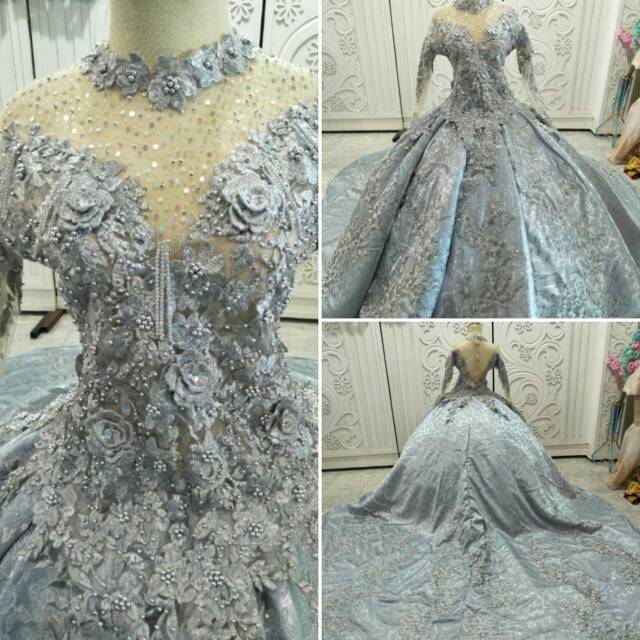 Jual V2102 Gaun Pengantin Modern Cantik Elegant Warna Silver Silver Kab Sleman Boutiq Berlian Tokopedia