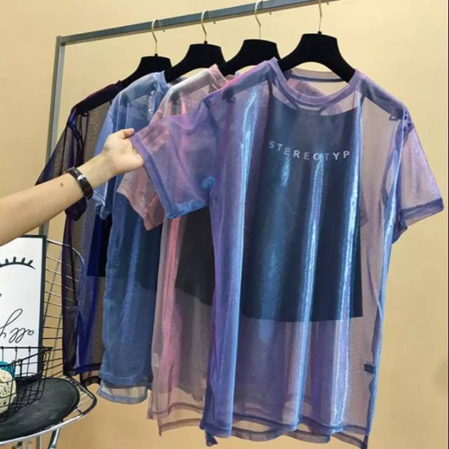 Baju Korea Mesh Es Blus Lengan Pendek Sling Lengan Pendek Shopee Indonesia